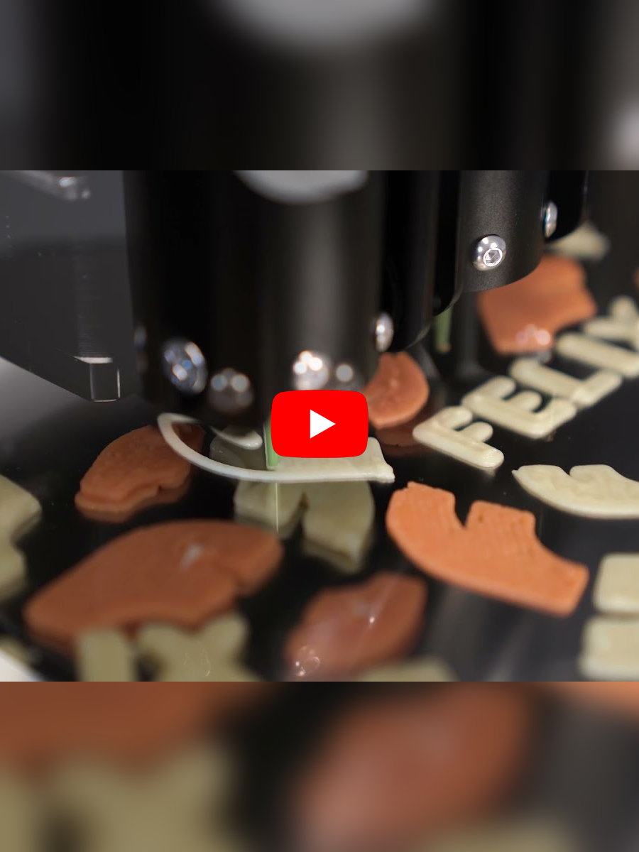 Felix Switch 3D food printer with dual plastic basic syringes, angled mid-shot – affordable dual-head 3D food printing Front mid-shot Felix Switch 3D food printer plus dual plastic basic syringes – compact dual-nozzle 3D food-printing setup Close-up dual plastic basic syringes in Felix Switch 3D food printer – easy-refill nozzles for smooth dual-head prints Action shot loading plastic basic syringe into Felix Switch 3D food printer – quick, tool-free cartridge swap Felix Switch 3D food printer with dual stainless-steel premium syringes, angled mid-shot – pro-grade precision food printing Front mid-shot Felix Switch 3D food printer plus dual stainless-steel premium syringes for fast, consistent food prints Close-up dual stainless-steel premium syringes in Felix Switch – durable, hygienic cartridges for 3D food printing Close-up premium syringe with premium nozzle – high-precision tip for detailed edible 3D prints on Felix Switch Macro of premium plunger – smooth pressure control enabling accurate dual-syringe portioning in 3D food printing Bottom view premium nozzle Felix Switch 3D food printer – ultra-fine lines for intricate 3D food details Close-up touch display on Felix Switch 3D food printer – intuitive dual-head control for any 3D food-printing workflow Installing stainless-steel flexplate on Felix Switch build plate – magnetically stable base for reliable 3D food prints Placing silicone baking mat on Felix Switch build plate – non-stick surface for effortless release of edible prints 3D-printed Felix logo from potato purée & pumpkin cream – vibrant demo with the Felix Switch 3D food printer FELIX Food 1.6 - Switch Head