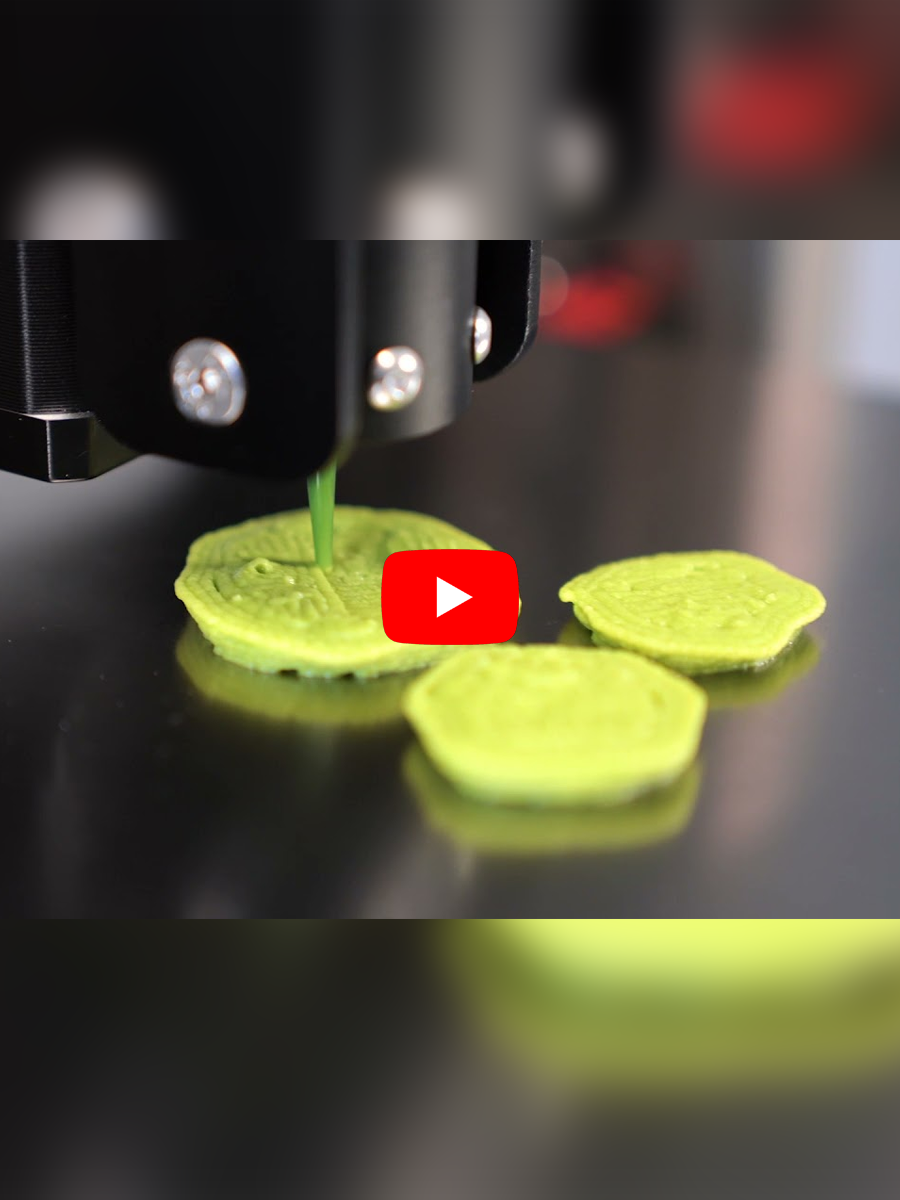 Felix 3D food printer with plastic basic syringe, angled mid-shot – affordable entry-level 3D food printing Front mid-shot Felix 3D food printer plus stainless-steel premium syringe for fast, consistent food prints Close-up stainless-steel premium syringe in Felix 3D food printer – durable, hygienic cartridge for food printing Action shot loading plastic basic syringe into Felix 3D food printer – quick, tool-free cartridge swap Felix 3D food printer with stainless-steel premium syringe, angled mid-shot – professional precision food printer Front mid-shot Felix 3D food printer plus plastic basic syringe, compact desktop 3D food-printing setup Close-up plastic basic syringe inside Felix 3D food printer – easy-refill nozzle for smooth 3D food prints Close-up premium syringe with premium nozzle – high-precision tip for detailed edible 3D prints Macro of premium plunger – smooth pressure control enabling accurate portioning in 3D food printing Bottom view premium nozzle Felix 3D food printer – ultra-fine lines for intricate 3D food details Close-up touch display on Felix 3D food printer – intuitive touchscreen control for any 3D food-printing workflow Installing stainless-steel flexplate on build plate – magnetically stable base for reliable 3D food prints Placing silicone baking mat on build plate – non-stick surface for effortless release of edible prints Fresh 3D-printed broccoli from broccoli purée – healthy showcase made with the Felix 3D food printer FELIX Food 1.6 - Single Head